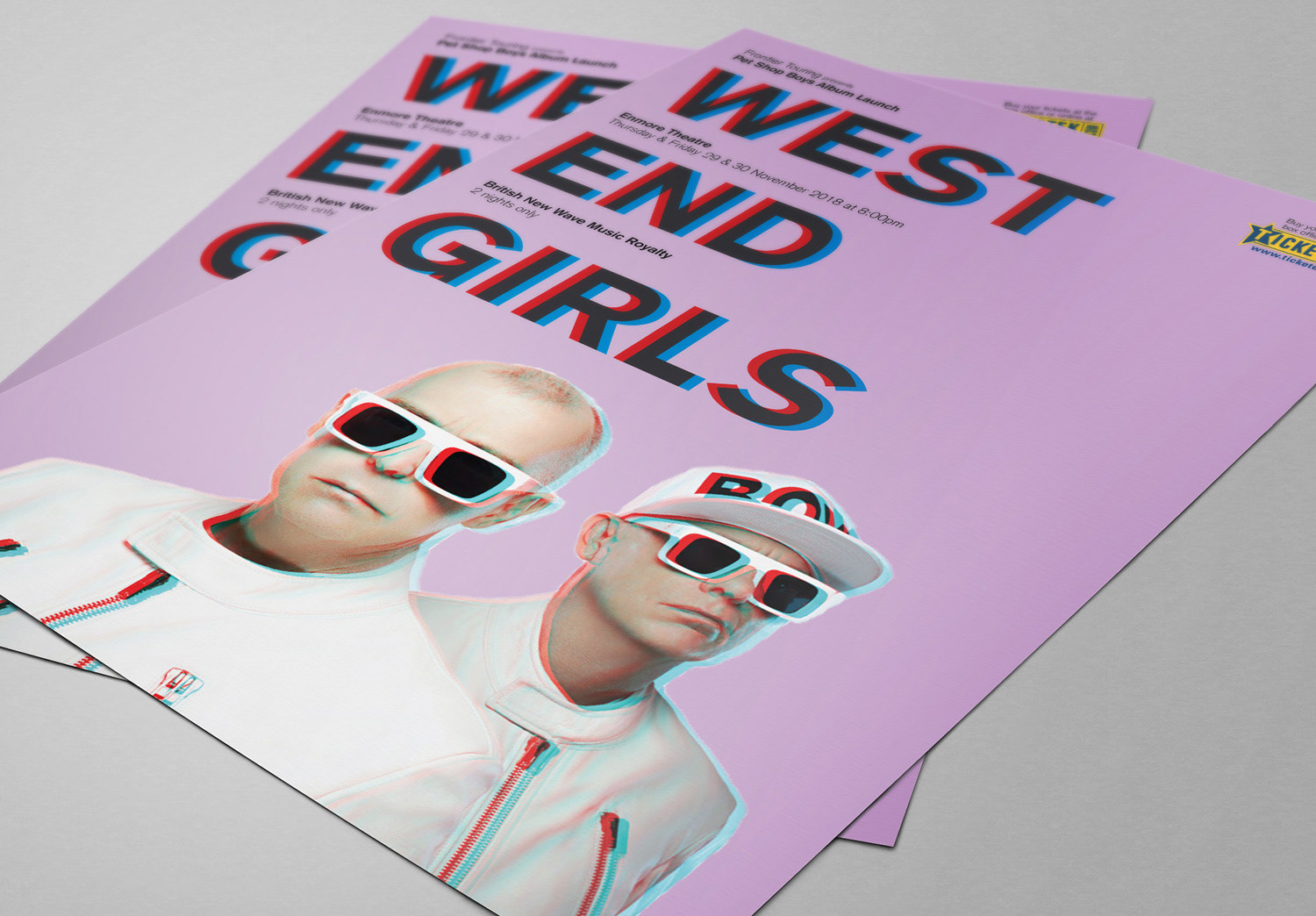 For this brief, I have chosen to use the historical design style of International Typographical Style. The contemporary music of Pet Shop Boys would suit the look of International Typographical Style for the logotype. This concept was carried across to all the branding collateral. As shown in the manipulation of the image by splitting the RGB channels into the red (R) and cyan (GB) colours, creating an anaglyph effect.